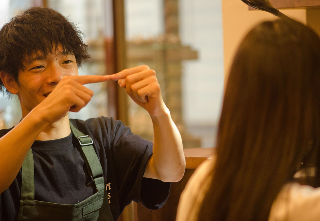 木目を基調とした店内の中で、じっくりとお話させていただけるよう、広々としたソファーに腰かけて、思い思いにお話いただけます。